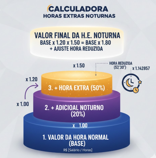 Cálculo das Horas Extras Noturnas: