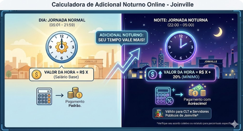 Se você trabalha à noite em Joinville e busca informações sobre “adicional noturno online”, provavelmente tem uma destas dúvidas: “Como posso calcular meu adicional noturno?”, “Será que estou recebendo o valor correto?” ou “O que fazer se minha empresa não pagar o que é devido?”.